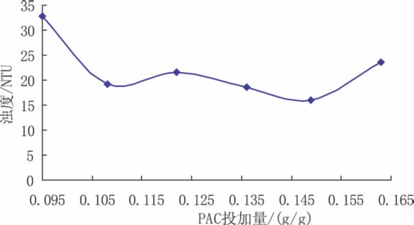 ( 1) 當(dāng)PAC 投加量為0. 136 g /g 時(shí),濾餅的過濾含水率較低,為72. 55%,而投加量為0. 149 g /g 時(shí),離心上清液濁度較低,為17 NTU。